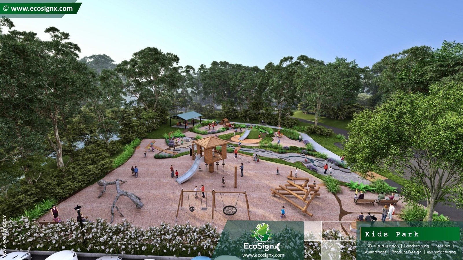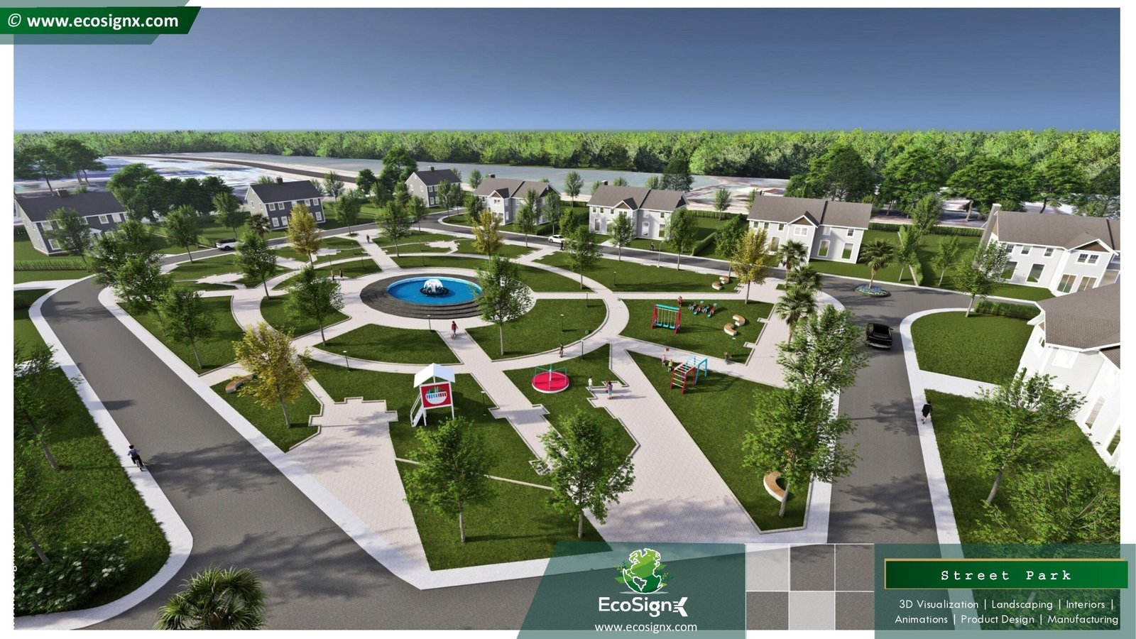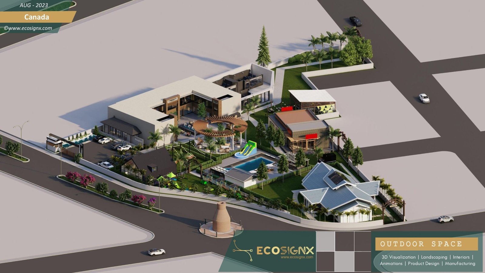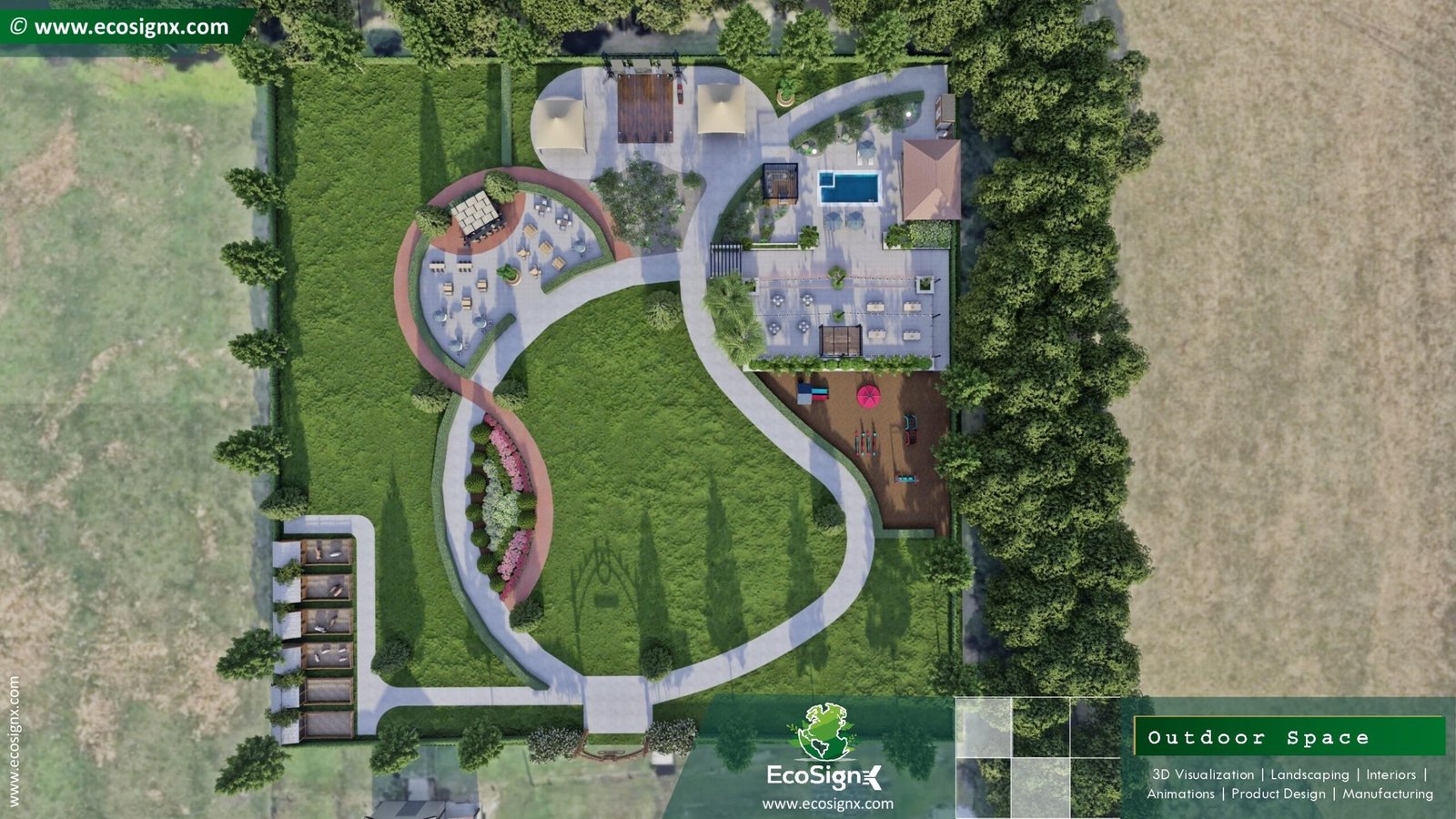 Professional 3D landscape design and rendering for outdoor environments — from residential backyards to parks and large-scale resort landscapes.
