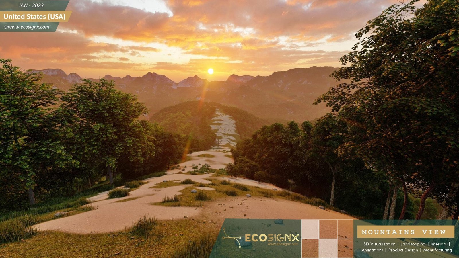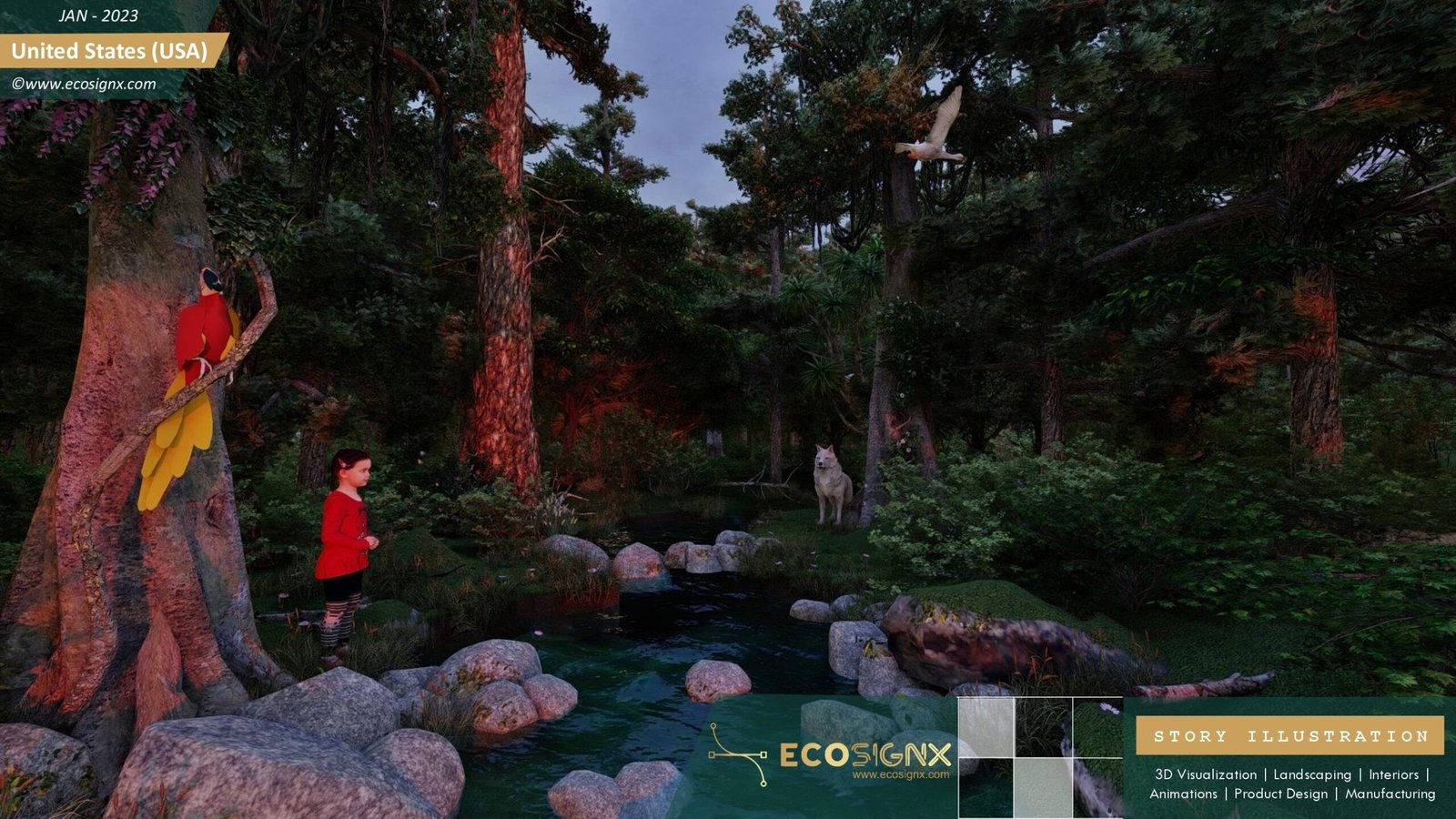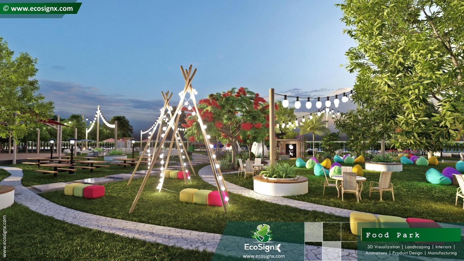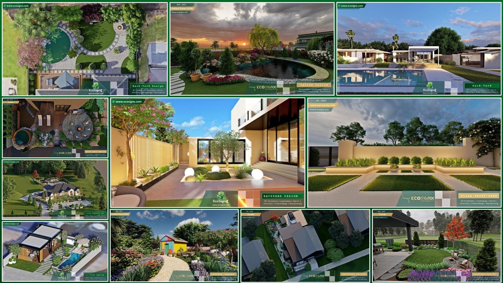 Professional 3D landscape design and rendering for outdoor environments — from residential backyards to parks and large-scale resort landscapes.